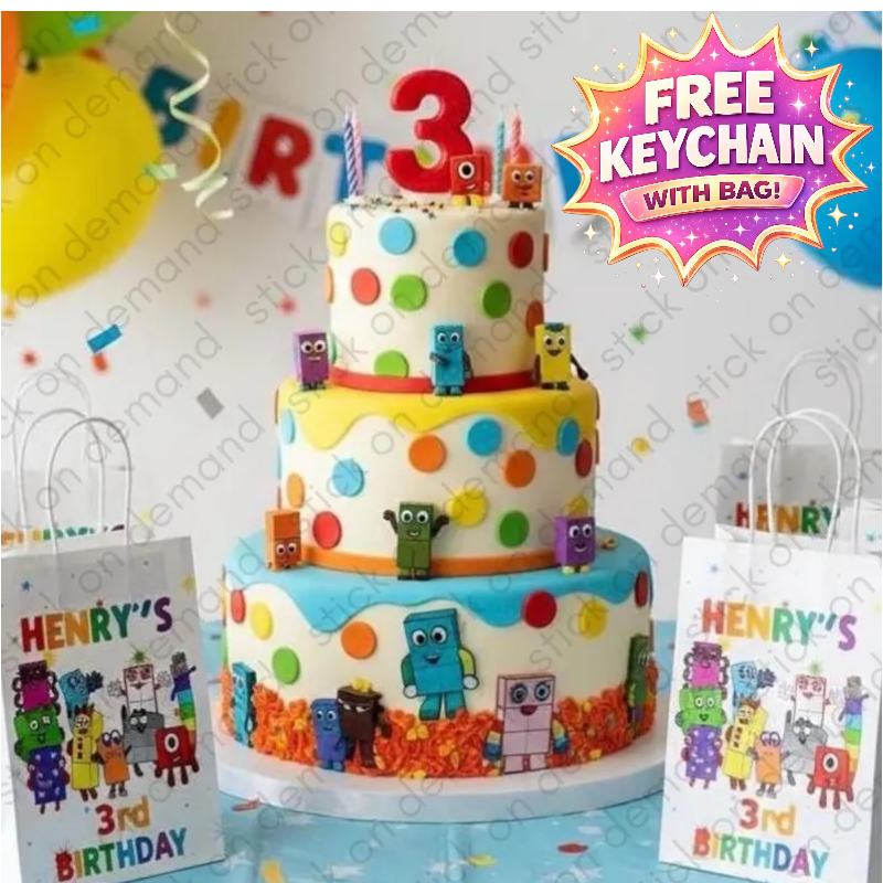 Colorful Number Blocks Party Favor Bags or Complete Kit - Personalised Kids Birthday Goodie Bags - Custom Celebration Favors