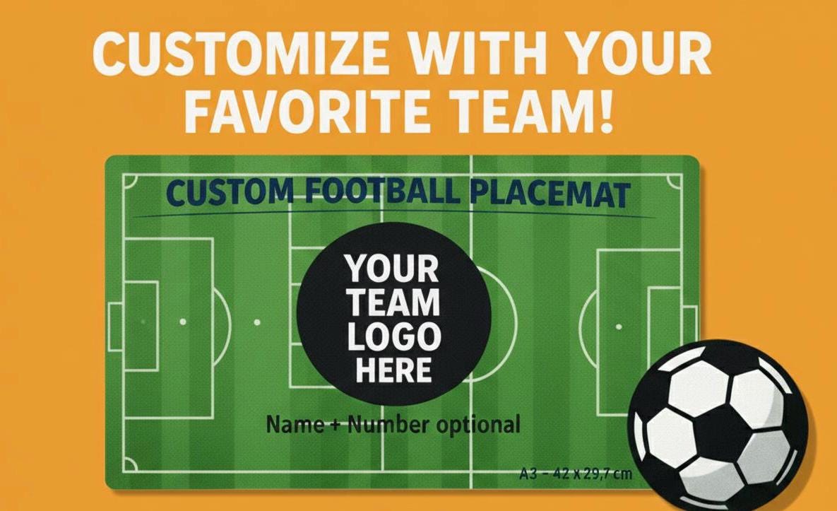 Personalised Placemat & Coaster Football Tableware – Custom Designs Available